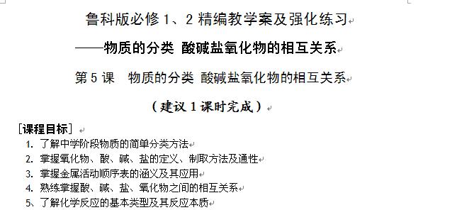 强化训练(五)——物质的分类 酸碱盐氧化物的相互关系(鲁科版必修1、2)