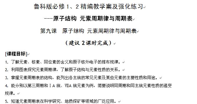 强化训练(九)——原子结构 元素周期律与周期表(鲁科版必修1、2)