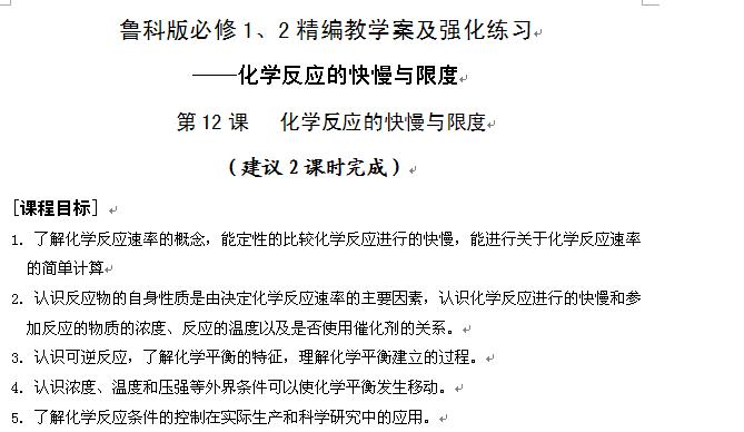 强化训练(十二)——化学反应的快慢与限度(鲁科版必修1、2)