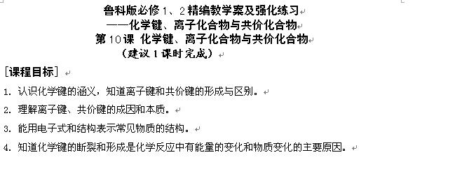 强化训练(十)——化学键、离子化合物与共价化合物(鲁科版必修1、2)