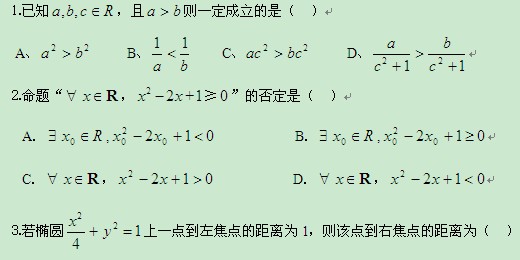 广东省汕头金山中学2011-2012学年高二上学期期末考试(数学文)