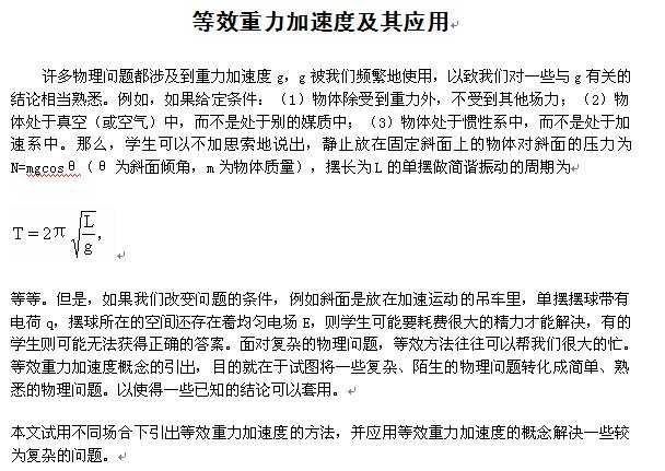 物理:等效重力加速度及其应用