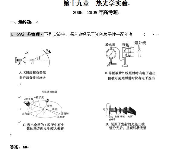 物理:2010届高考复习五年高考三年联考精品题库:第十九章 热光学实验