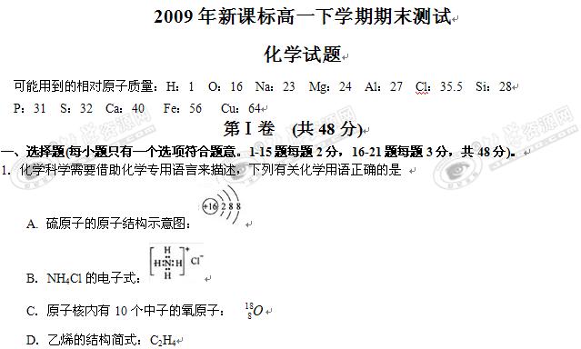 【新人教版】(新教材)高中化学选择性必修2模块过关检测二