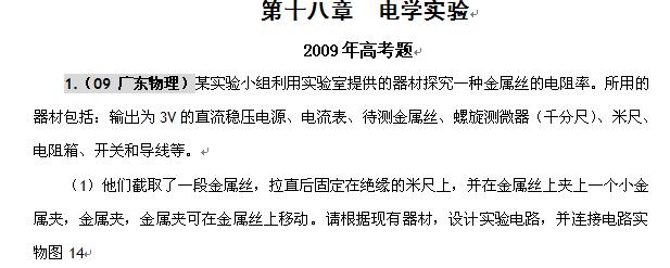 物理:2010届高考复习(五年高考三年联考):第十八章 电学实验