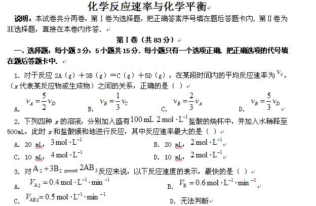 2010届高考化学一轮复习测试卷--化学反应速率与化学平衡