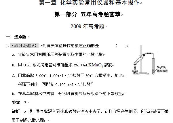 化学:五年高考三年联考精品题库——《化学实验常用仪器和基本操作》