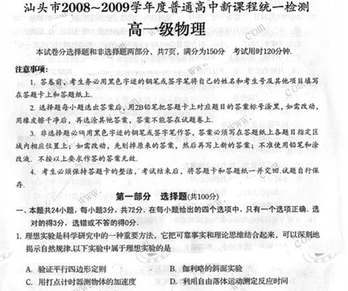 广东省汕头市08-09学年高一下学期期末考试(物理)