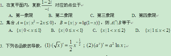 浙江省台州中学11-12学年高二下学期期中试题(数学文)