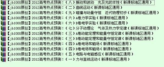 【打包下载jb1000原创】2012高考热点预测:(一)~(九)(课改地区)