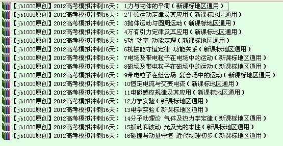 【打包下载jb1000原创】2012高考模拟冲刺16天(课改地区)