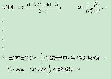 福建省大田一中2011-2012学年高二暑假作业数学(理)试题(1)