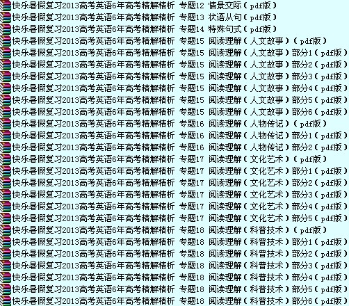 快乐暑假复习2013高考英语6年高考精解精析 专题11-20(pdf版)40套