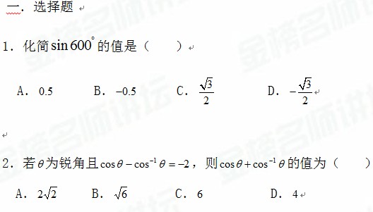 2012版高中全程复习方略跟踪检测:第一讲:三角函数与平面向量(北师大版数学理)