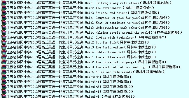 【打包】江苏省泗阳中学2013届高三英语一轮复习单元检测 (译林牛津版)20份