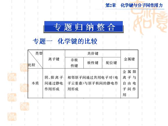 2013年化学鲁科版选修3精品课件:第2章 化学键与分子间作用力章末优化总结