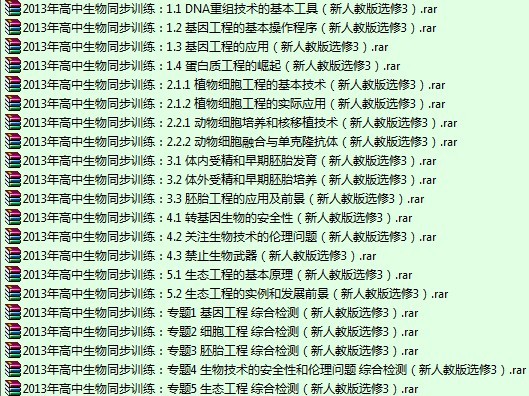 【打包】2013年高中生物同步训练(人教版选修3)共21份