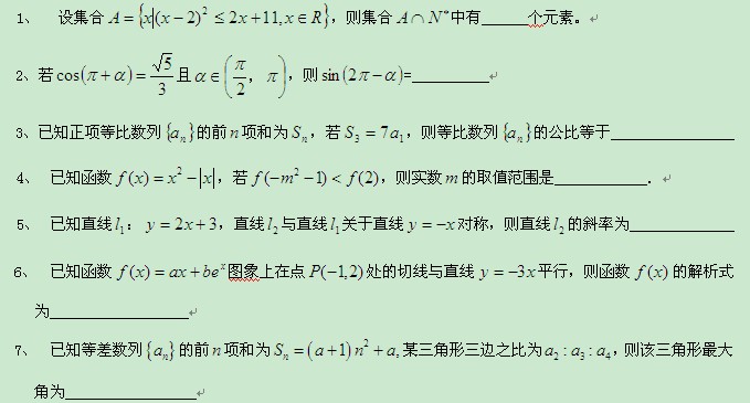 江苏省扬中市第二高级中学2013届高三数学复习限时训练(1-7)