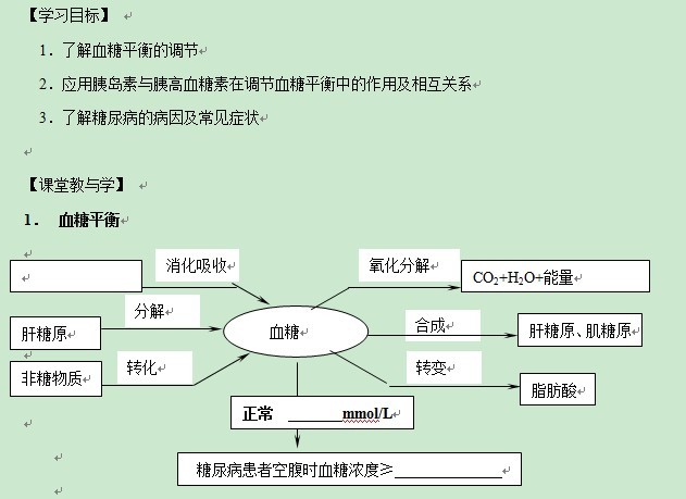 江苏省徐州市王杰中学高二生物学案:血糖调节