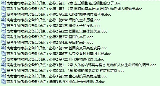 【打包】高考生物考前必备知识点总结(15份)