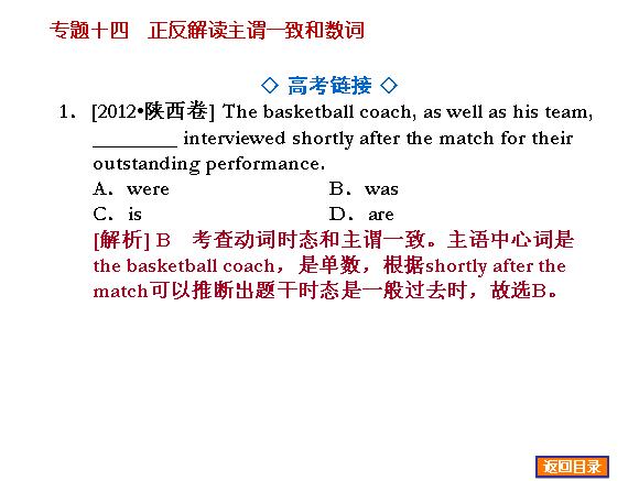北师大版2014届高三英语一轮语法精品课件:专题14正反解读主谓一致和数词
