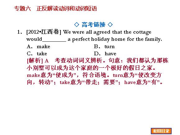 北师大版2014届高三英语一轮语法精品课件:专题6正反解读动词和动词短语