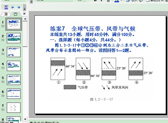 2014高考一轮复习 练案 7全球气压带、风带与气候