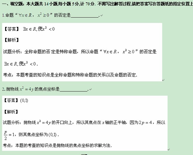 江苏省盐城市中学2013-2014学年高二上学期期中考试(数学理)(解析版)