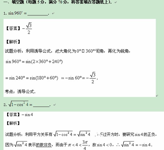 江苏省扬州中学2013-2014学年高一12月月考(数学)(解析版)