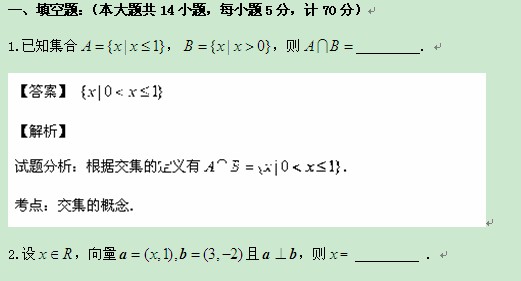 江苏省苏州市2014届高三暑假自主学习测试(数学理)(解析版)