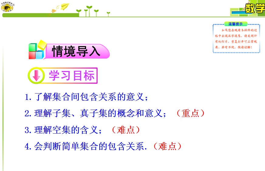 2013版高中全程学习方略多媒体课件:1.1.2 集合间的基本关系(人教A版必修1)