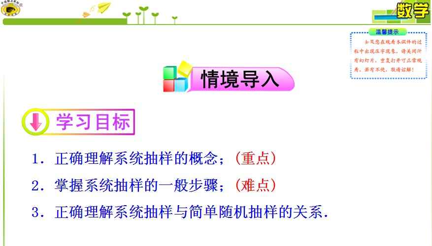 2013版高中数学全程学习方略多媒体课件:2.1.2系统抽样(人教A版必修3)