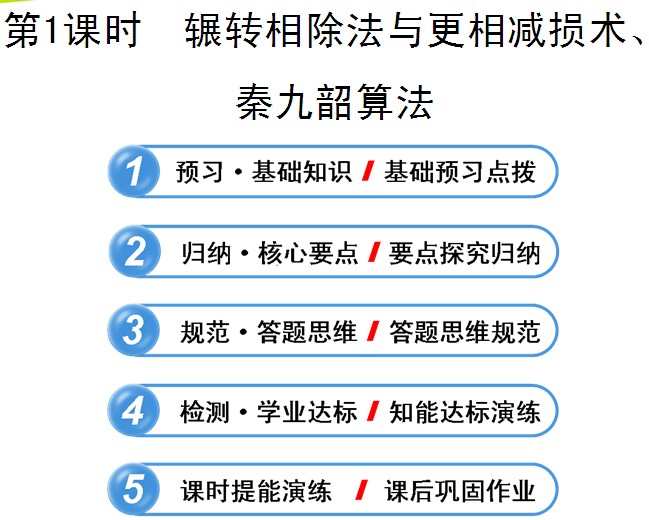 2013版高中数学全程学习方略配套课件:1.3.1辗转相除法与更相减损术、秦九韶算法(人教A版必修3)