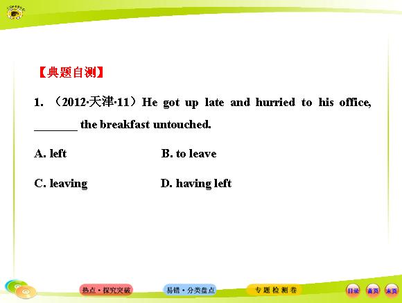 【热点突破·易错盘点】1.1.6非谓语动词(2014高考英语专题辅导课件·鲁津赣专供)