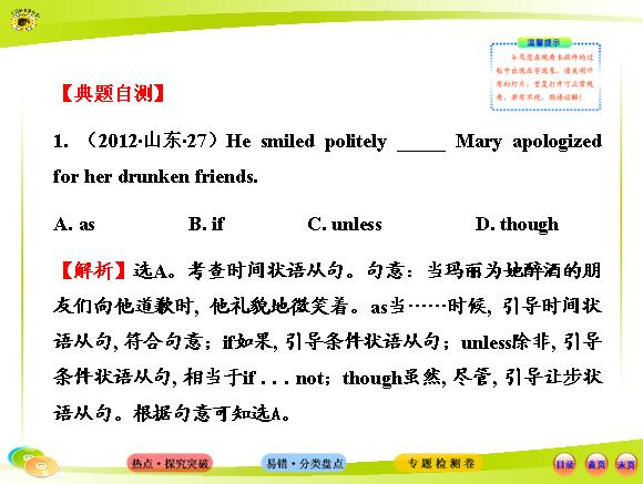 【热点突破·易错盘点】1.2.3状语从句(2014高考英语专题辅导课件·鲁津赣专供)