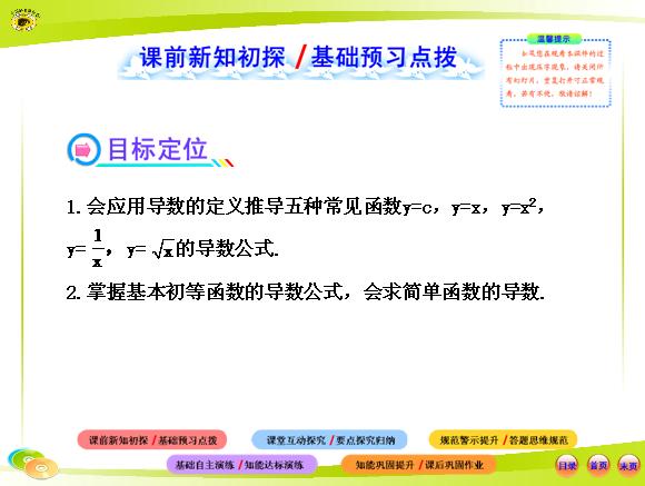 2012版高中数学同步配套课件:1.2.1&1.2.2.1几个常用函数的导数&基本初等函数的导数公式及导数的运算法则(一)(人教A版选修2-2)