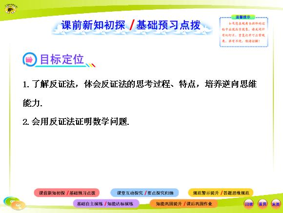 2012版高中数学同步配套课件:2.2.2反 证 法(人教A版选修2-2)