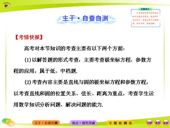 选修4-4坐标系与参数方程(2013版高考理科数学专题辅导与训练配套课件-通用版)