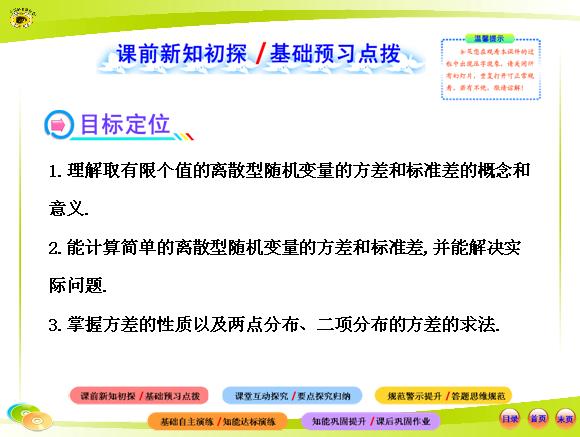 2012版高中数学同步配套课件:2.3.2离散型随机变量的方差(人教A版选修2-3)