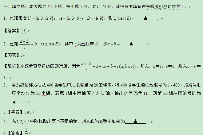 江苏省淮安市淮海中学2014届高三三统模拟测试(一)(数学)