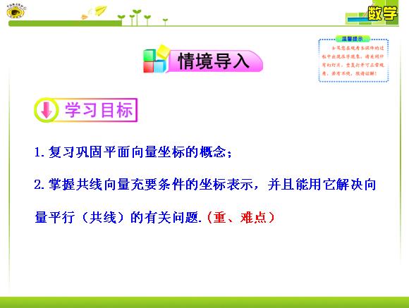 2013版高中全程学习方略多媒体课件:2.3.4 平面向量共线的坐标表示(人教A版必修4)