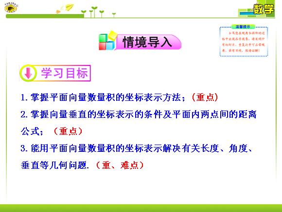 2013版高中全程学习方略多媒体课件:2.4.2 平面向量数量积的坐标表示、模、夹角(人教A版必修4)