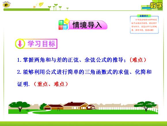 2013版高中全程学习方略多媒体课件:3.1.2 两角和与差的正弦、余弦、正切公式(一)(人教A版必修4)