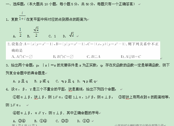 江西省上饶市2014届高三第二次模拟考试(数学理)(2014上饶二模)