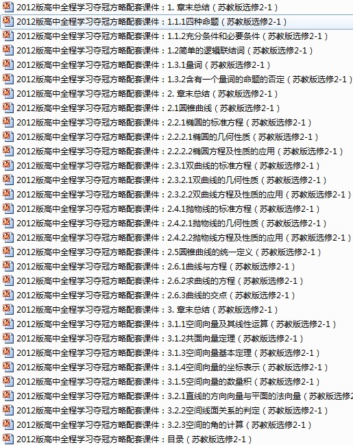 [打包下载]2012版高中全程学习夺冠方略配套课件(苏教版选修2-1)