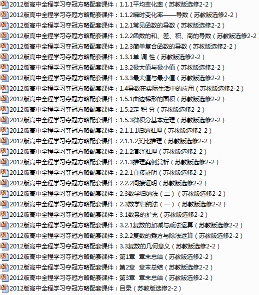 [打包下载]2012版高中全程学习夺冠方略配套课件(苏教版选修2-2)