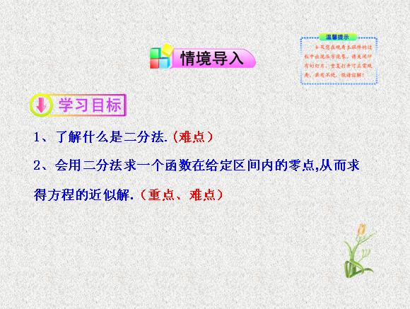 2013版高中同步数学多媒体课件:3.4.1 第2课时 用二分法求方程的近似解(苏教版必修1)