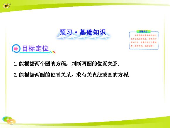2013版高中数学全程学习夺冠方略配套课件:2.2.3圆与圆的位置关系(苏教版必修2)