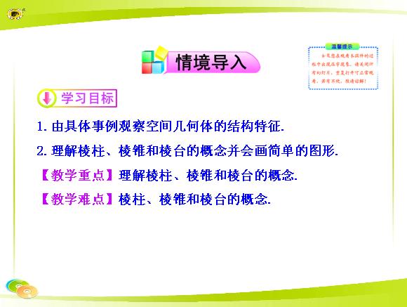 2013版高中数学全程学习夺冠方略多媒体教学课件:1.1.1 棱柱、棱锥和棱台(苏教版必修2)