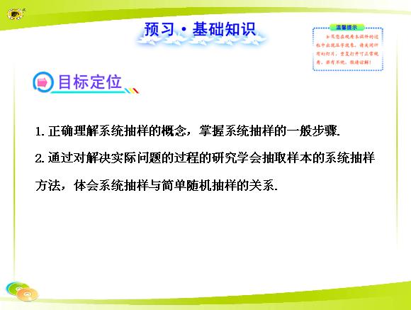 2013版高中数学全程学习夺冠方略配套课件:2.1.2系统抽样(苏教版必修3)